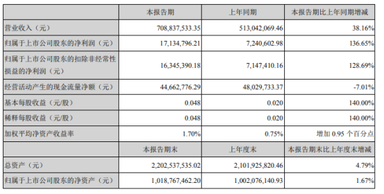 挖贝网8月6日,大通燃气(000593,股吧)(000593)近日发布2021年半年度报告,报告期内公司实现营业收入708,837,533.35元,同比增长38.16%;归属于上市公司股东的净利润17,134,796.21元,同比增长136.65%。