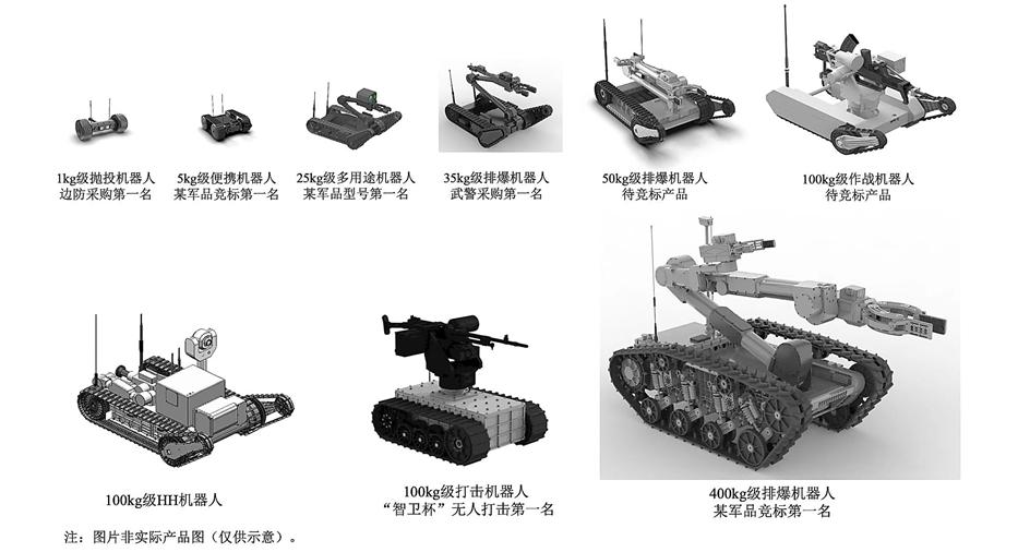 在军用机器人领域,公司的主要机器人品类涉及战场侦察、武装打击、作战物资输送、通信中继和电子干扰、核生化及爆炸物处理、精确引导与毁伤评估等多种作战任务,由行驶平台系统、定位导航系统、综合控制系统、任务载荷系统、人机交互系统等技术平台支持。此外,根据客户需求及搭载模块不同,公司还具有针对部分组件或分系统进行特殊工艺处理的能力,如电磁屏蔽、核化防护、涉水密封、抗冲击处理等,实现了研发应用领域覆盖面广阔的技术特点。